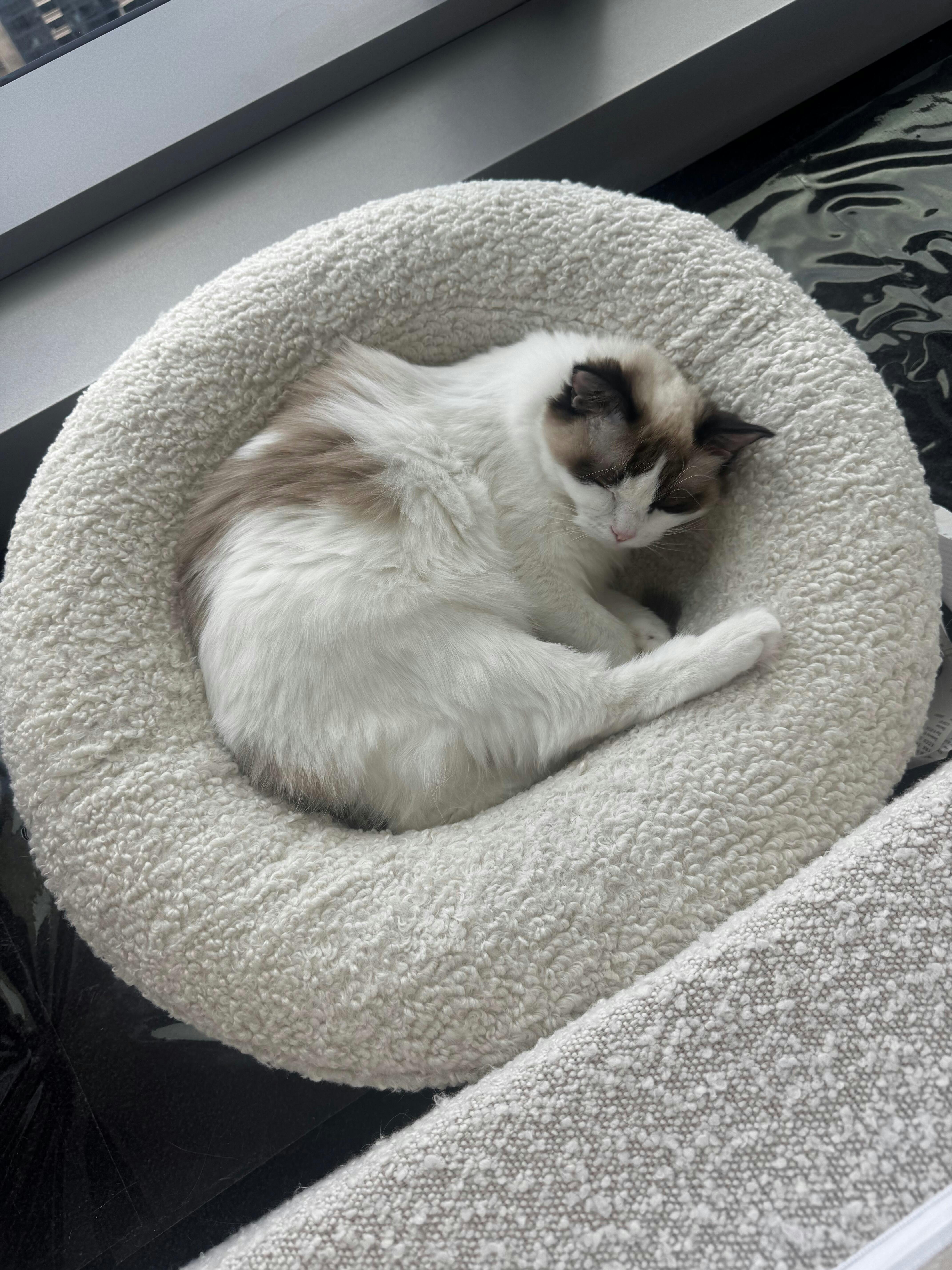 'This is the first time my cat has actually sat in a bed. Now I can't get him out!'
